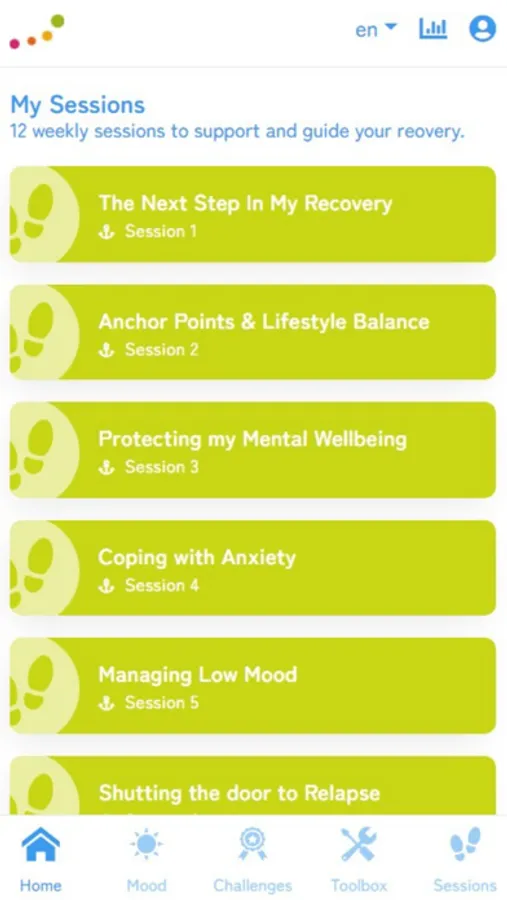 Explore the comprehensive weekly sessions that can help you manage anxiety, depression, low mood and outline ways to protect your mental health and wellbeing.