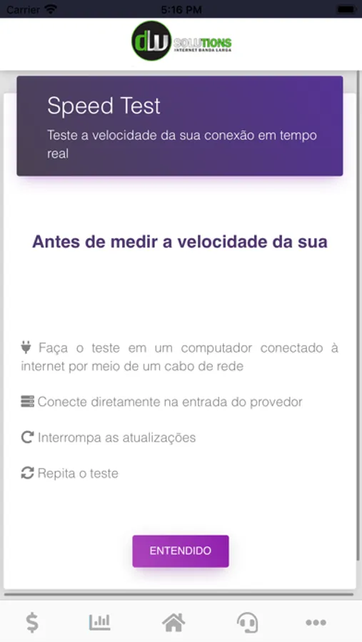 Com o aplicativo DW Solutions você poderá consultar as suas faturas, assinar seu contrato digitalmente, verificar o seu consumo de banda e muito mais!
