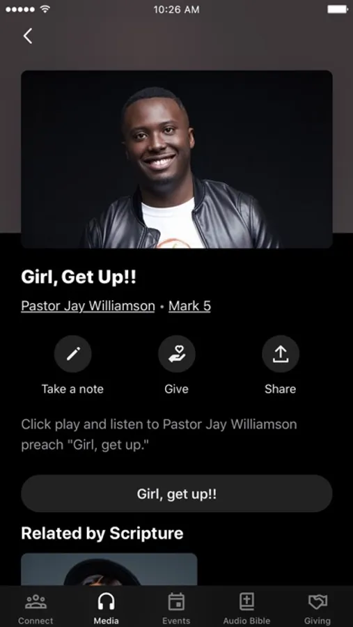 This app will help you stay connected with the day-to-day life of our church. With this app you can: watch or listen to past messages; stay up to date with push notifications; share your favorite messages via Twitter, Facebook, or email; and download messages for offline listening.