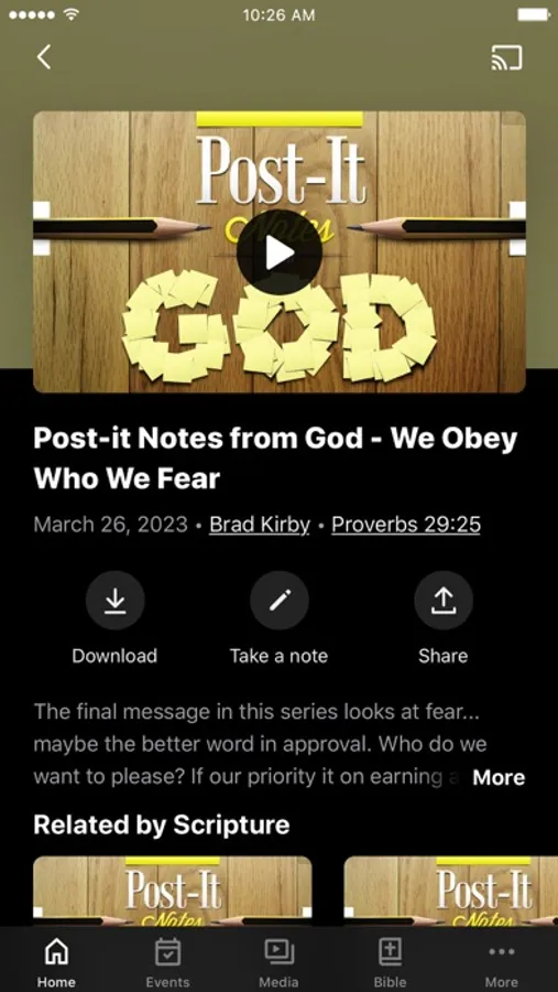 This app will help you stay connected with the day-to-day life of Eastwood Baptist Church. With this app you can: watch or listen to past messages; stay up to date with push notifications; share your favorite messages via Twitter, Facebook, or email; and download messages for offline listening.
