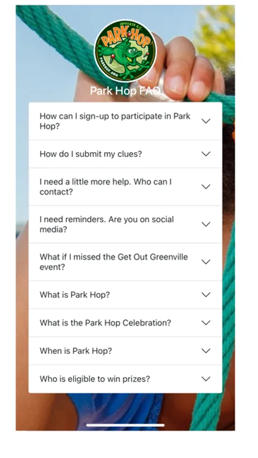 Park Hop is a free, summer-long scavenger hunt developed in partnership with all Greater Greenville County & Spartanburg County Parks & Recreation agencies.Use the app to answer clues as you explore Upstate South Carolina parks!