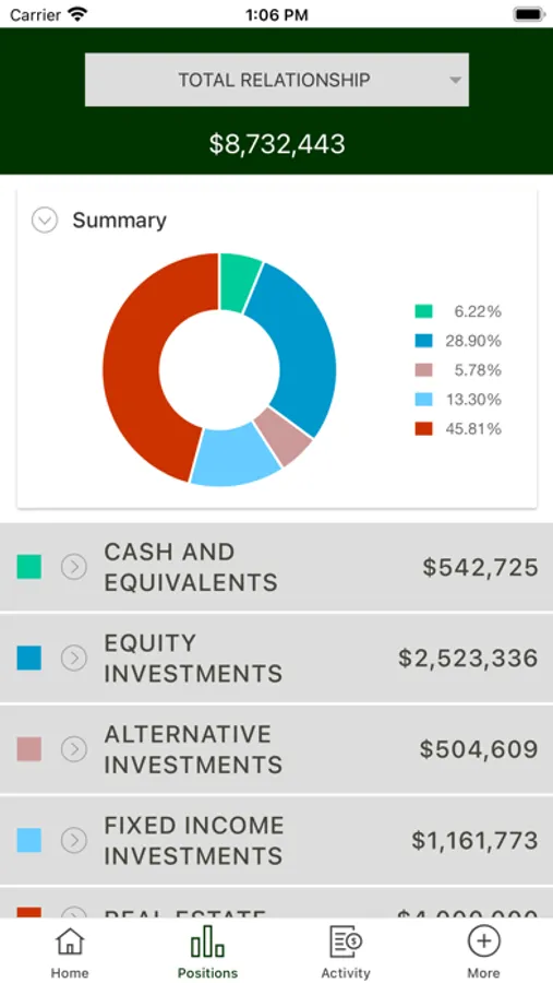 • A snapshot of your total portfolio on an aggregated basis or by individual account.