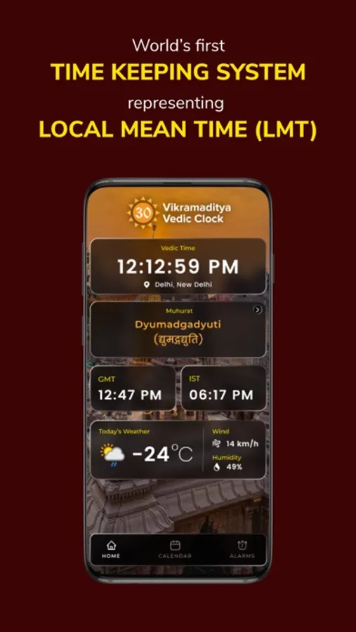Description: The First ever Time keeping System of the World that represents Local Mean Time(LMT), The Time Format that this Clock follows is research of Ancient Indian Scholar's (Rishi’s).This Clock is most advance way of time keeping as Our date changes at Time of Sunrise(30 Hours Time System between two Sunrise) which fixes Problems faced in current 24Hours Time System.