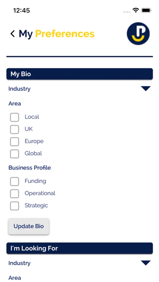 1. A person-to-person business partner finder. Users upload a profile of the business they are seeking to start up, and the matching algorithm searches for potential partners. Once matches are made, users can privately message each other.