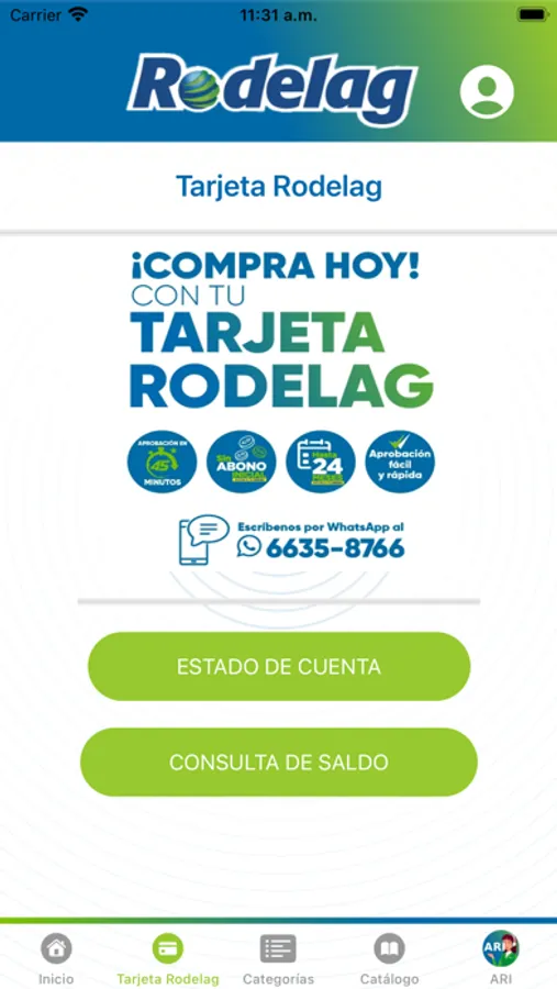 Rodelag Clientes, nuestra aplicación móvil para consultar el Saldo y el Estado de cuenta de tu Tarjeta Rodelag, Historial de Compras, Catálogo, Ver las últimas Ofertas.