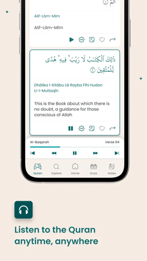 - Share Verses with your loved ones via Deen’s shareable card option.