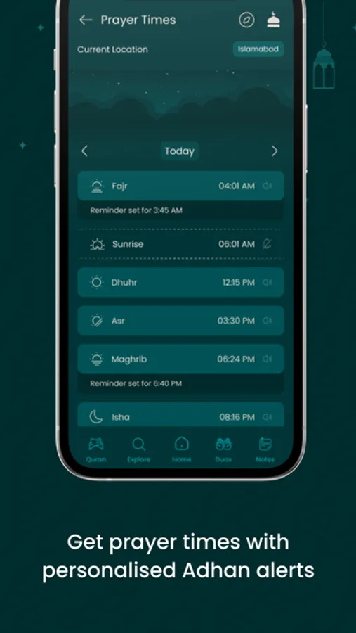 - Receive alerts for Suhoor and Iftar times during the month of Ramadan.