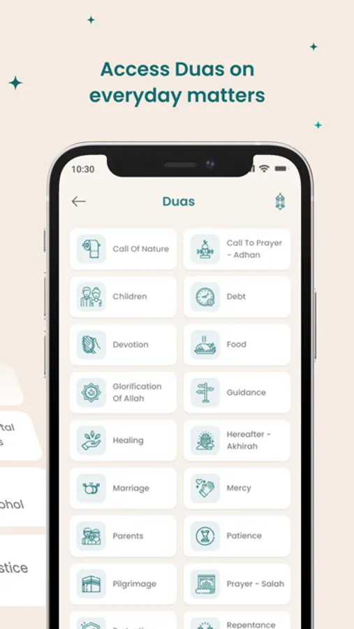 Access Duas sourced directly from the Quran and Sahih Bukhari on a wide range of everyday topics to read on-the-go or in the comfort of your home.