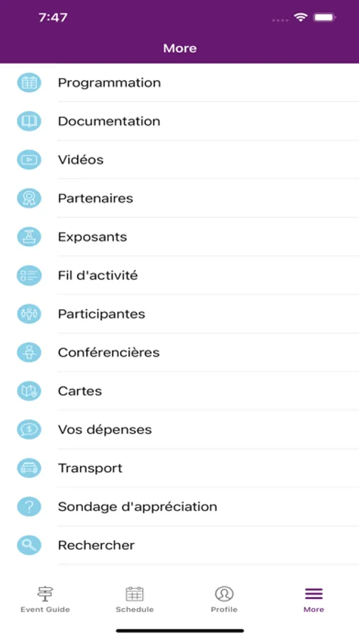 Cette application permet de trouver toute l'information nécessaire au sujet des événements du SPGQ. Vous y trouverez la documentation nécessaire, la programmation, le profil des personnes conférencières, etc. Vous pourrez aussi y trouver des informations pratiques pour votre hébergement et vos repas.