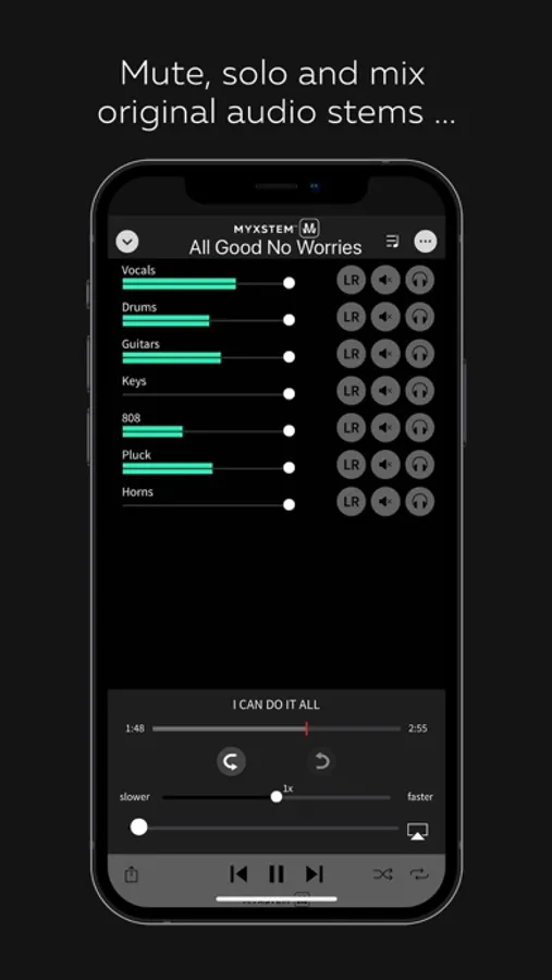 ‘Boxout - ALL GOOD NO WORRIES’ is a MYXSTEM app release, allowing users to completely control the listening experience. The app features mute, solo, pan and fade for each stem along with tempo control, looping and lyrics. By adjusting the levels of each instrument (stem), musicians can build the perfect mix to play- and sing-along. All album-as-an-app releases from MYXSTEM deliver interactive audio to create an immersive musical experience.