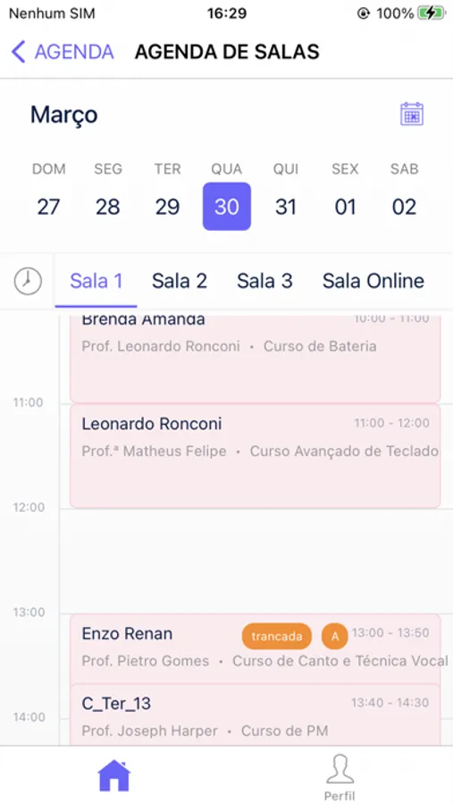 - Agenda da sua escola: Veja as aulas que estão ocorrendo em cada sala e com cada professor.