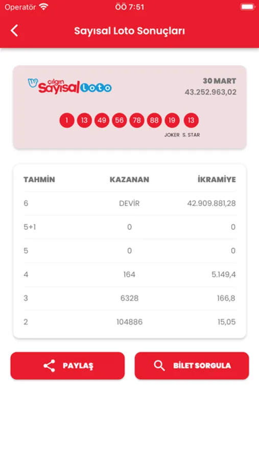 Milli Piyango tarafından düzenlenen Sayısal Loto, Süper Loto, On Numara, Şans Topu, Milli Piyango çekilişlerinin sonuçlarına kesintisiz ve hızlı bir şekilde ulaşın, kolayca biletinizi sorgulayın.