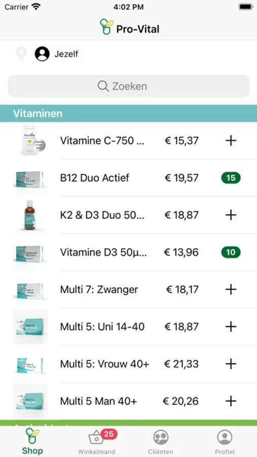 Onze app maakt het voor jou als gezondheidsprofessional makkelijk om de voedingssupplementen van Pro-Vital® te bestellen, waar je ook bent in deze wereld. Bestel eenvoudig extra voorraad of laat een bestelling direct bij een klant afleveren. Innovatieve ontwikkelaars stellen ons assortiment samen. Zij gebruiken de laatste inzichten uit onderzoek voor een optimale opname door het lichaam.