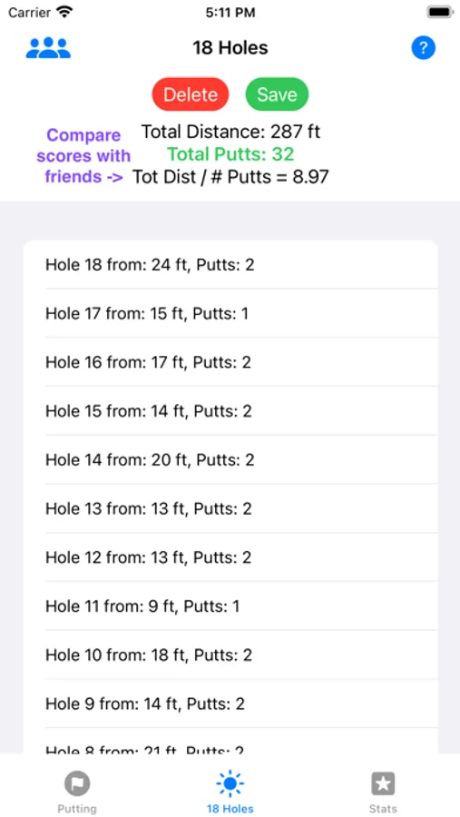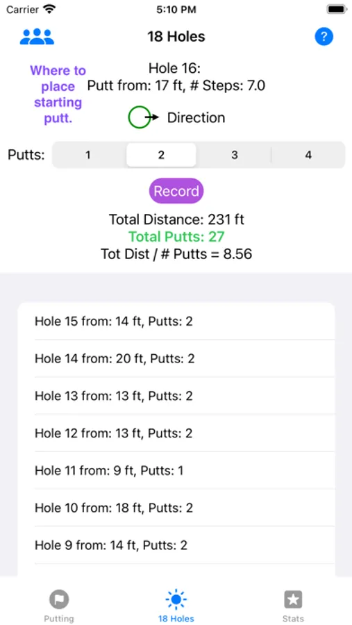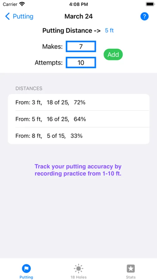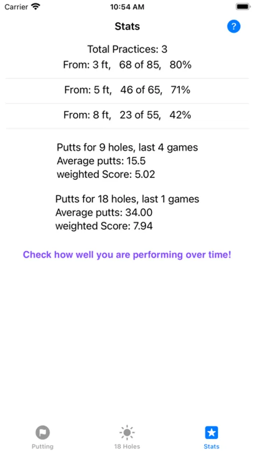 This is ideal for a golf team as players can compare practice putting scores for fun.