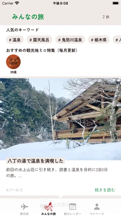 他のユーザーが投稿した日記を読んで次の旅行の予定を立てたり、自分の過去の日記をカレンダーやキーワードで見返したりできます。