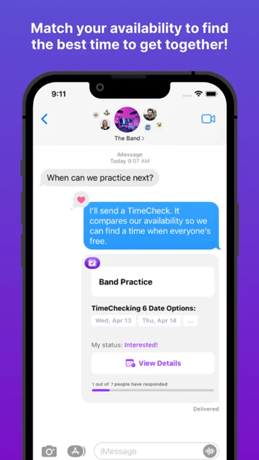 TimeCheck is an iMessage extension that helps you find the best times to get together. It works by matching snapshots of schedule availability so you can pick a time when everyone is free.