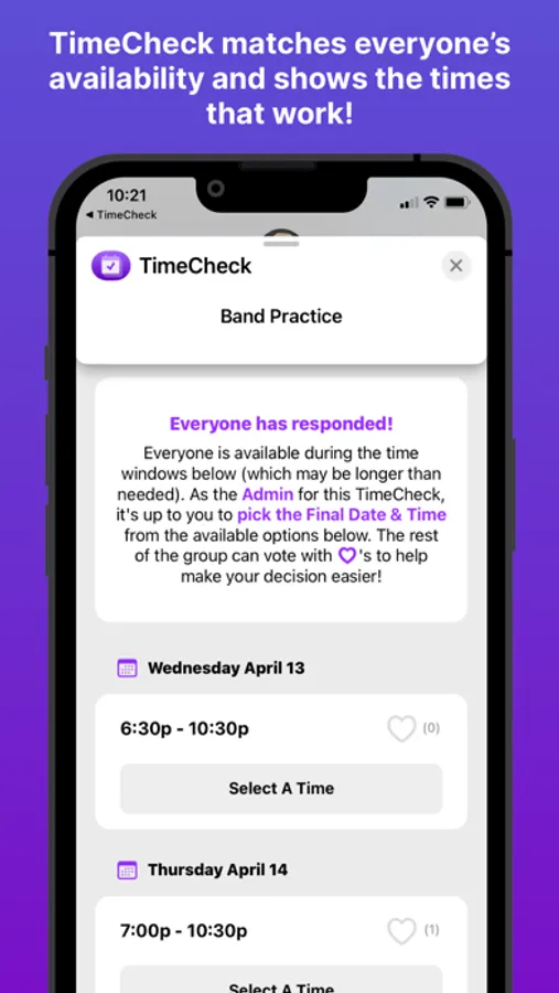 Use TimeCheck anytime it gets complicated to find a time to get together. For social events, meetings, and activities. Try it today!