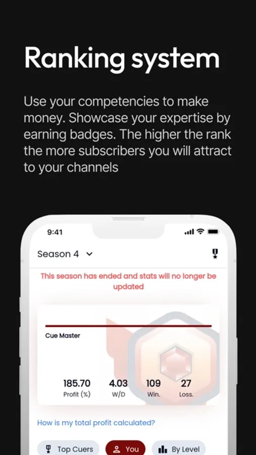 * Ranking system: Participate in 4-month ranking seasons, rank up and earn badges! Ranking system features 9 levels: Iron, Bronze, Silver, Gold, Platinum, Diamond, Diamond Plus, Master and Cue Master. At the beginning of every season, users will start from Iron rank and based on the total profit they make, they will make it to different ranks