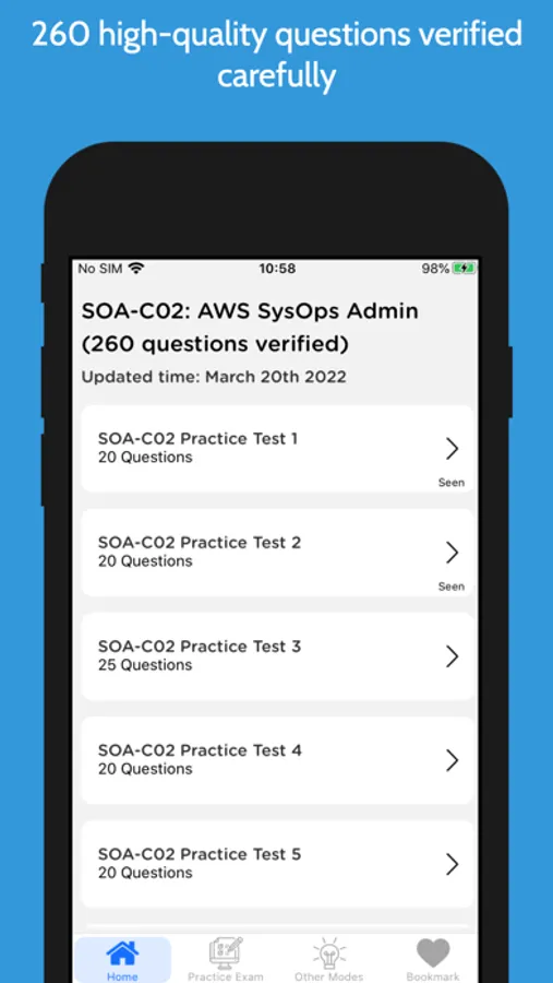 4.Examination mode will help you take test like a real exam. So you will be more confident.