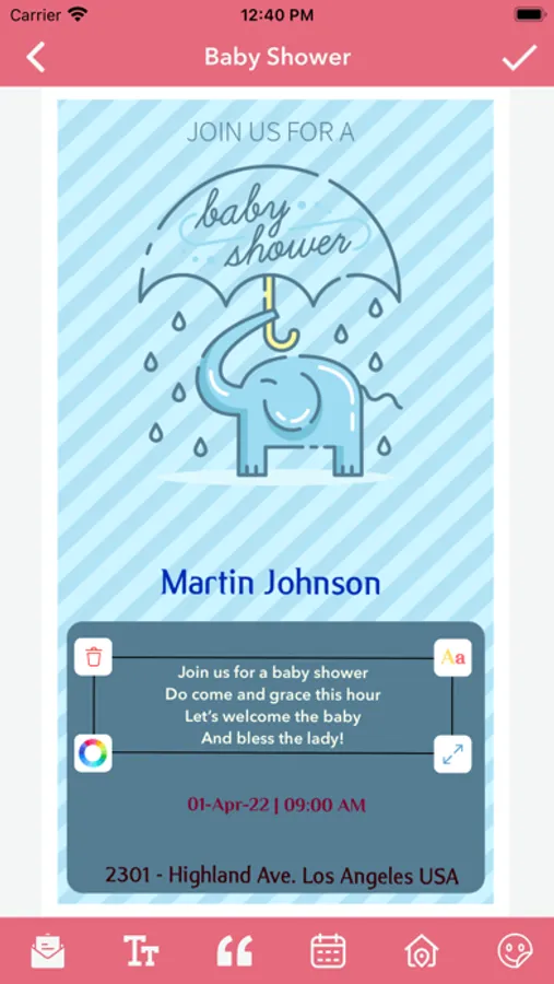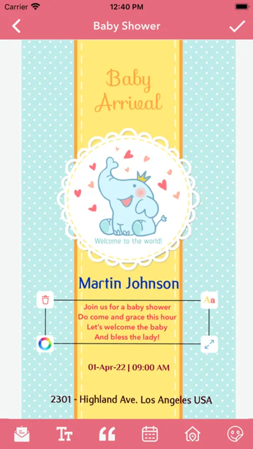 Welcoming a baby is a most cheerful moment in life. Mother and father want to invite all their relatives and friends to the party. The Baby Shower Invitation card maker makes it an even more joyful moment. All you have to do is just add time, place and RSVP details. Then you can share baby shower invitations on social media apps.