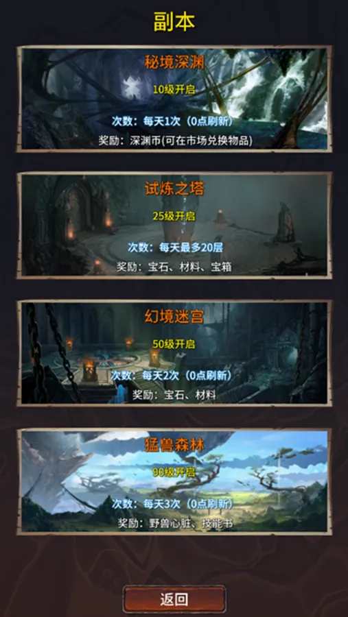一款超多内容的放置挂机游戏,可自由选择角色有战士,法师,刺客,弓箭手、死灵法、亚马逊等职业