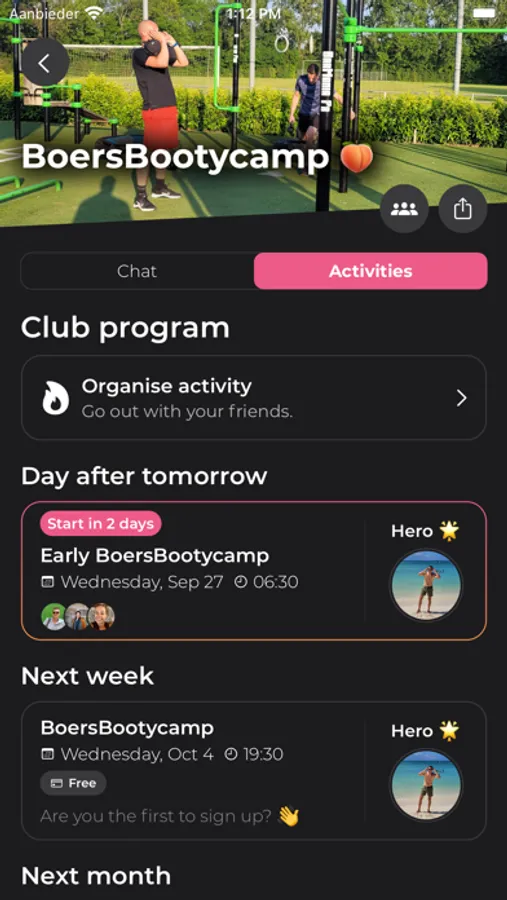 It has never been so easy and fun to go out for sports. Let your friends know that you just went and keep each other motivated. Define how often you want to do sports on a weekly basis, and let friends help you reach your goal. Let's go!