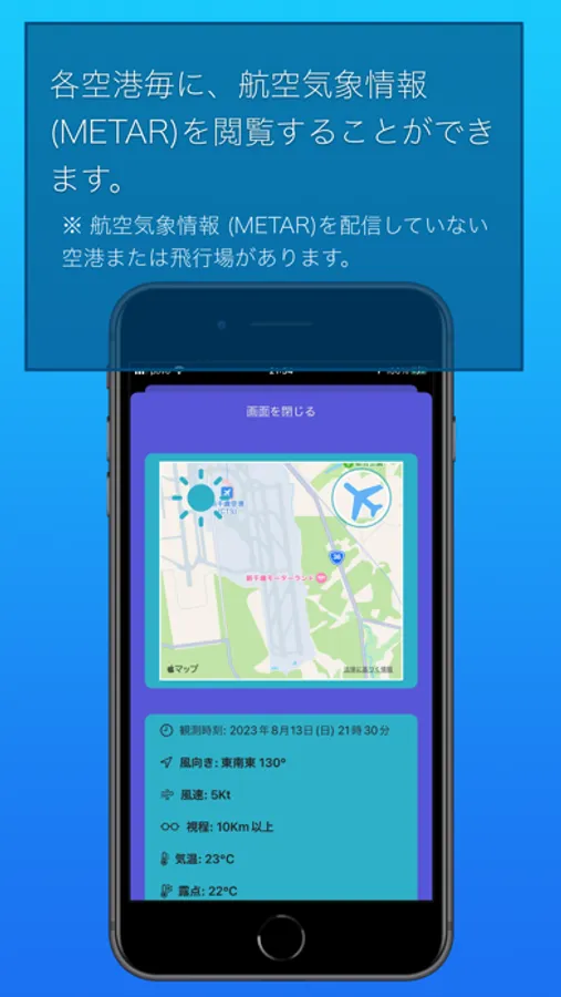 ※ 航空気象情報 (METAR)を配信していない空港または飛行場があります。