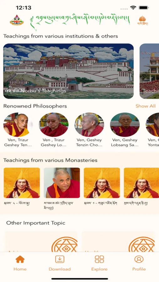 App offers an exclusive recording of teachings by the scholars and teachers of the Gomang monastery.