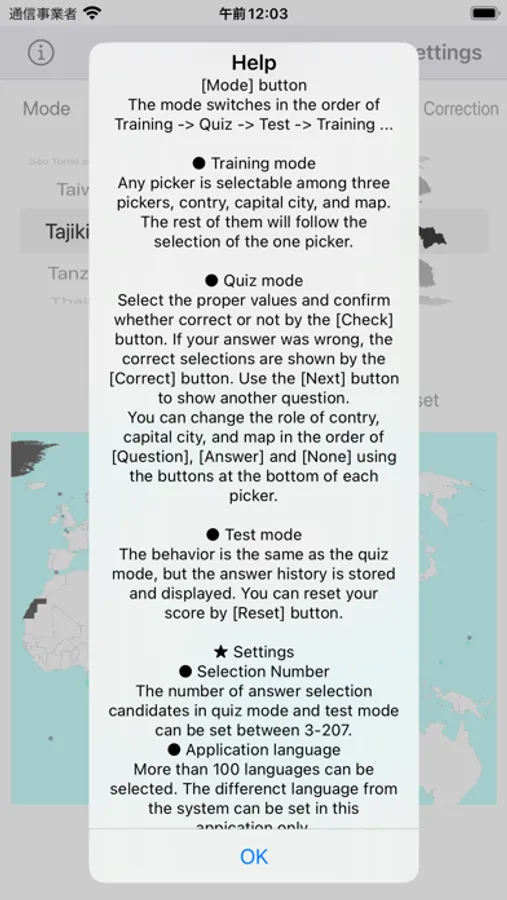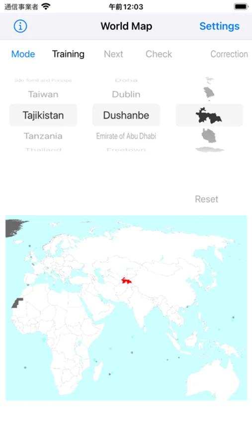 Puzzle application to make a correct set of the country name, capital city name and map position in the world.