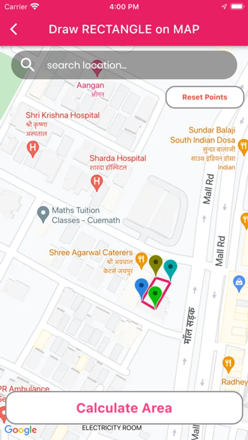 3. Start tapping on MAP to put points of shape one by one and lines will automatically connect those points to form the shape.