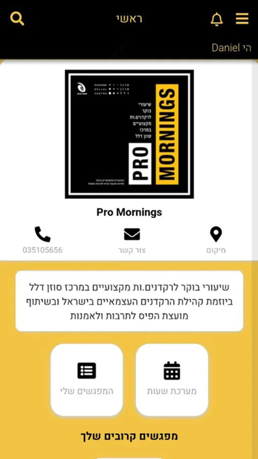 אפליקציה Pro Mornings מעניקה ללקוחות שרות זמין, נוח ונגיש מכל מקום להרשמה מפגשים וקבלת עדכונים מסטודיו