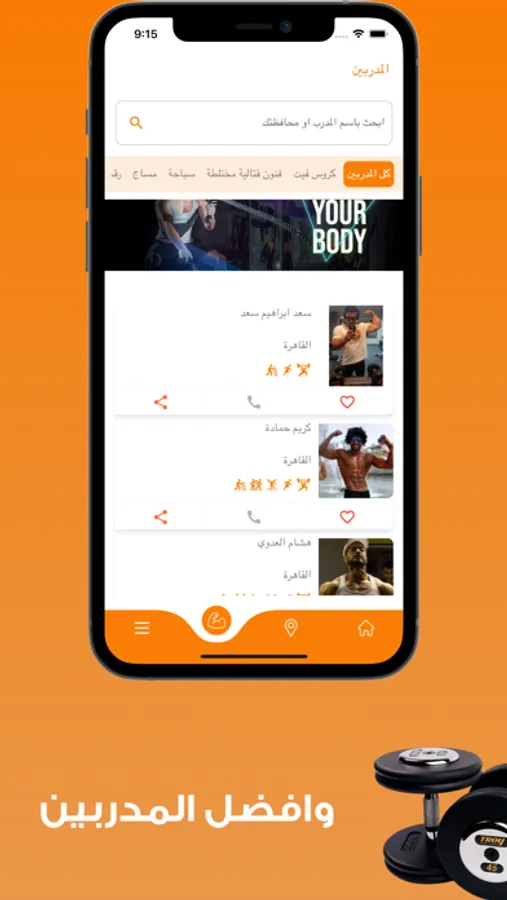 بمجرد تحميلك للأبليكاشن هاتقدرتبحث وتوصل علي اقرب و انسب جيم ليك سواء بحث عن طريق الخريطه او بحث بالاقسام او بحث بالكلمة ويمكن فلترت الجيمات علي حسب المدينة والمنطقة والخدمات وايضا الخصومات وتقدر ايضا البحث عن مدرب شخصي والتواصل معة مباشرا