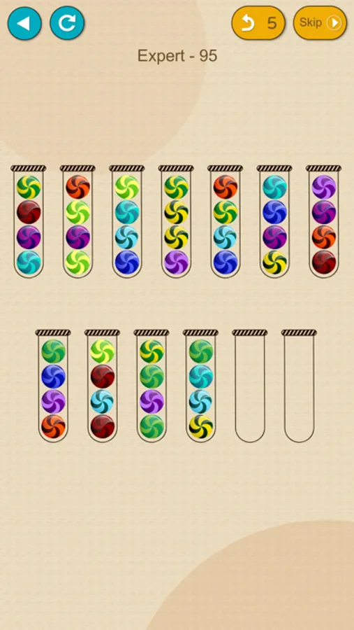 • The rule is that you can only move one ball on top of another if both are of the same colour and the tube you want to move in has enough space.
