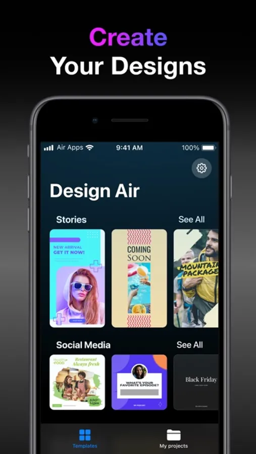 Design Air is a simple and easy design creator where you can make stunning logos, edit all elements, get creative flyers, create seasonal posters and develop social graphics.
