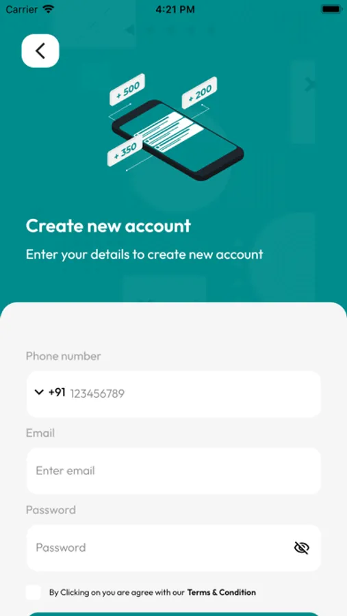 The sign-up process only asks the user for a phone number and email.