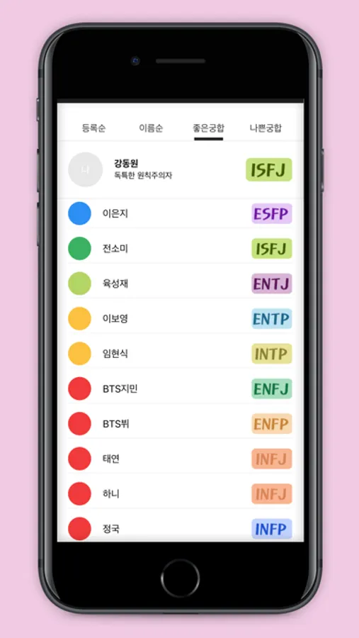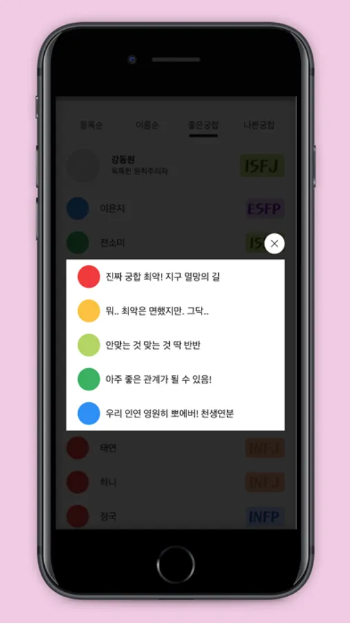 저장해 놓은 친구들의 MBTI로 친구들 간 궁합이 잘 맞는 조합도 알 수 있어요.