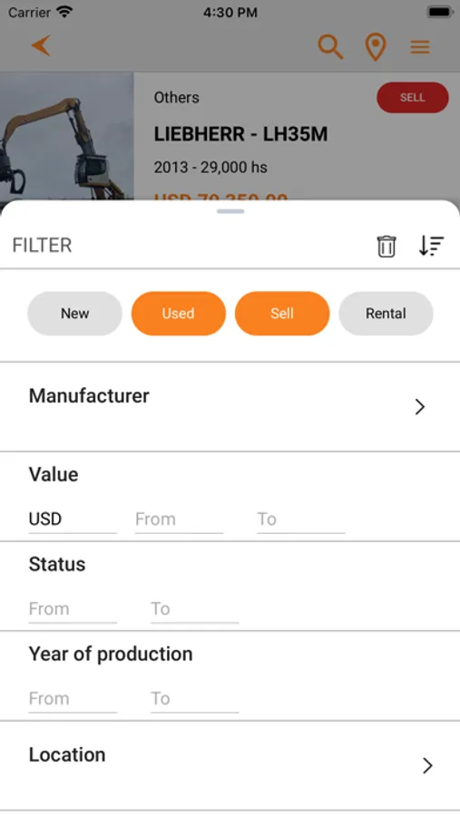 An App designed and developed exclusively for machineries, managing Ads, search filters and sections with expert specifications accordingly each market segment or subsegment: Construction, Material Handling, Ports, Aerial Platforms, Cranes and Agricultural.
