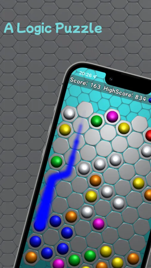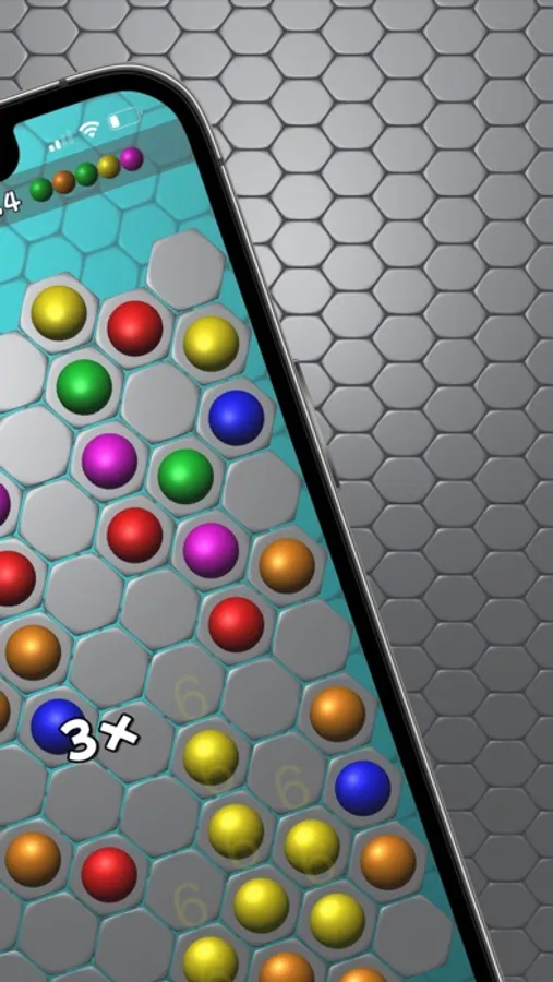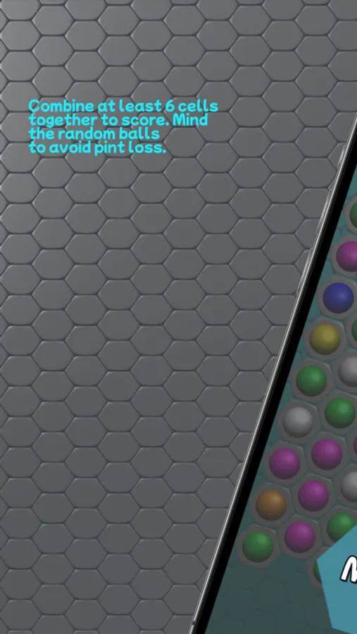 Hexagon Cells is a logic puzzle. Goal is to score points. To get points you have to combine 6 balls of the same color together.