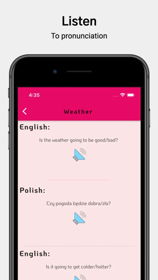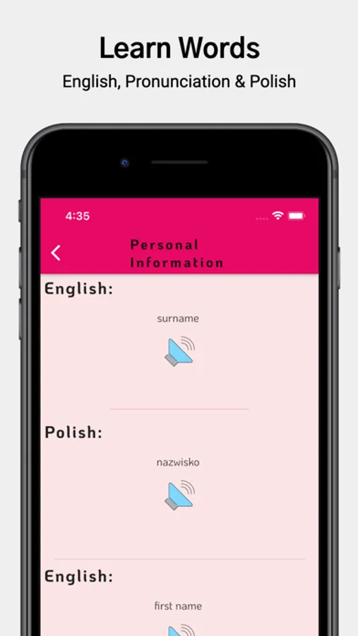 • In every lesson, you can listen to the Polish word pronunciation as well as see Polish word in english language.