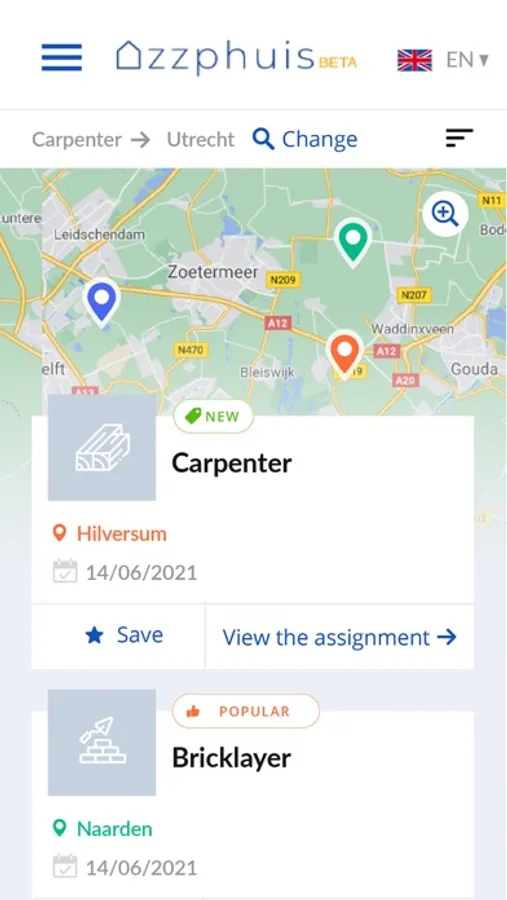 ZZPhuis is an automated platform that connects the self-employed (ZZP) with construction companies. Thanks to ZZPhuis, cooperation between you is simple and safe. ZZPhuis.nl is a virtual 'order exchange'.