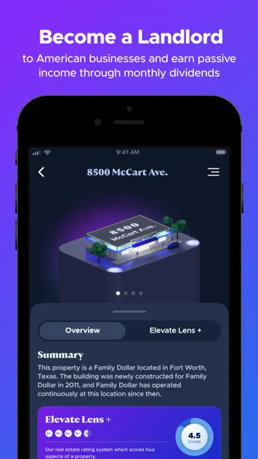 Our goal is to generate consistent, predictable monthly cash flow for Elevate’s investors from many properties that are diversified by use, location, and lease term. Most American businesses lease properties and with Elevate you can become their landlord.