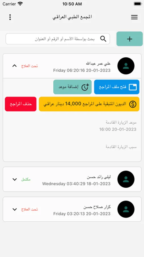 Archiving patients in a fantastic way, allowing you to search by the patient's name, number, or address.