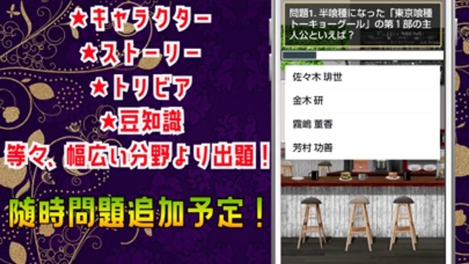 大人気アニメ東京喰種(東京グール)の検定アプリ登場。