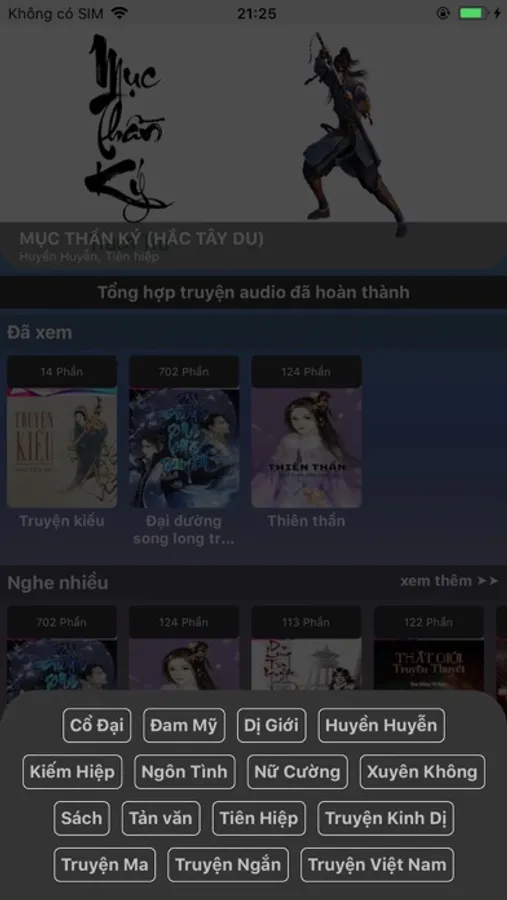 - App nghe truyện audio miễn phí với hàng ngàn truyện Audio thuộc nhiều thể loại: Ngôn Tình, Kiếm Hiệp, Tiên Hiệp, Trinh Thám, Ma-Kinh Dị.