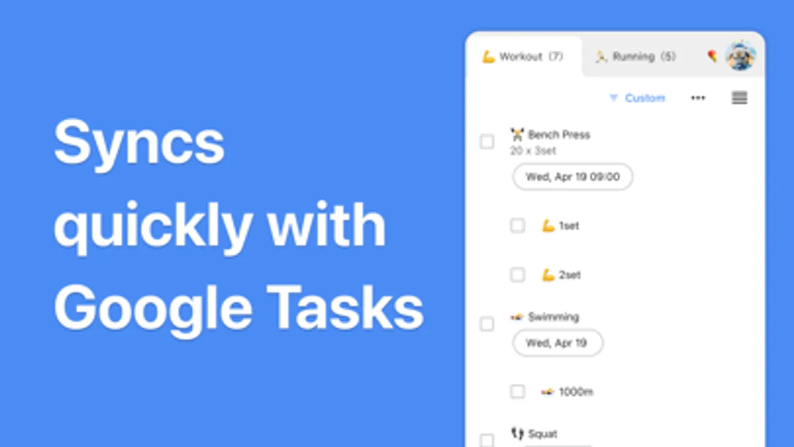 Task display of "today", "tomorrow", "the day after tomorrow", "overdue", "all", global search, alphabetical or date sorting, synchronization with desktop apps, multi-account support!