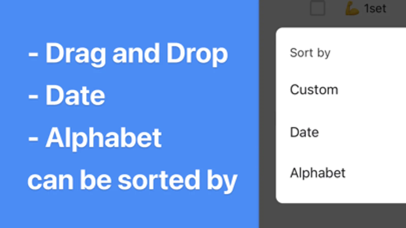 You can sort by "drag & drop", "date order", and "alphabetical order"!