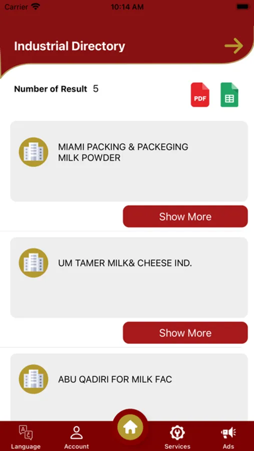- you can searching for industries and filtering the search through the industrial directory page. you also can export the search as PDF or Ecxel