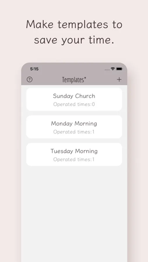 Frequently used tasks can be saved as templates and registered with a single tap. Separate by day of the week! Or divide by task content!