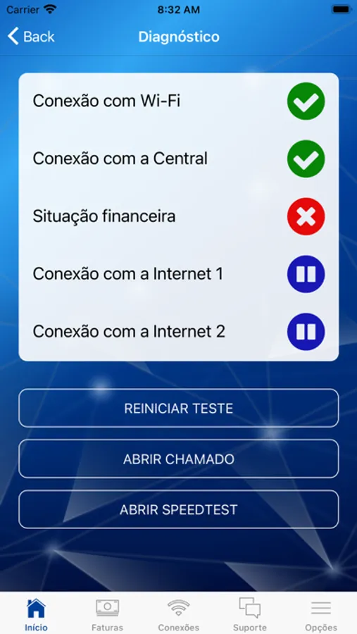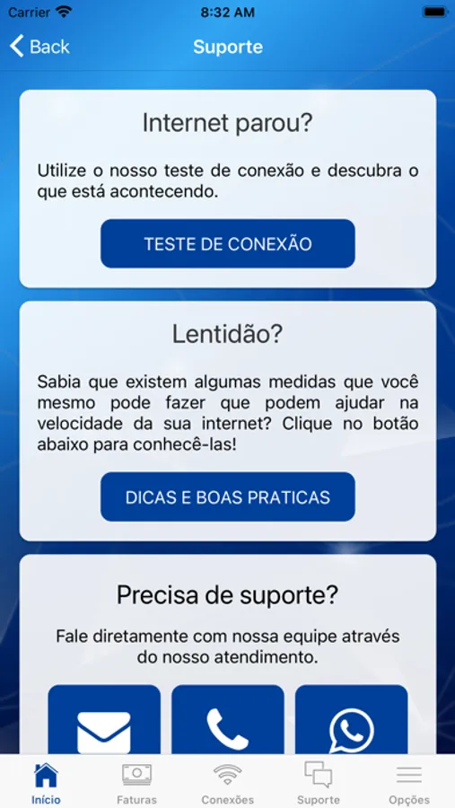 • Realização testes de conexão e velocidade;