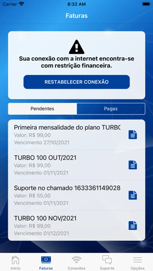 • Acesso a faturas e 2a via de boletos;